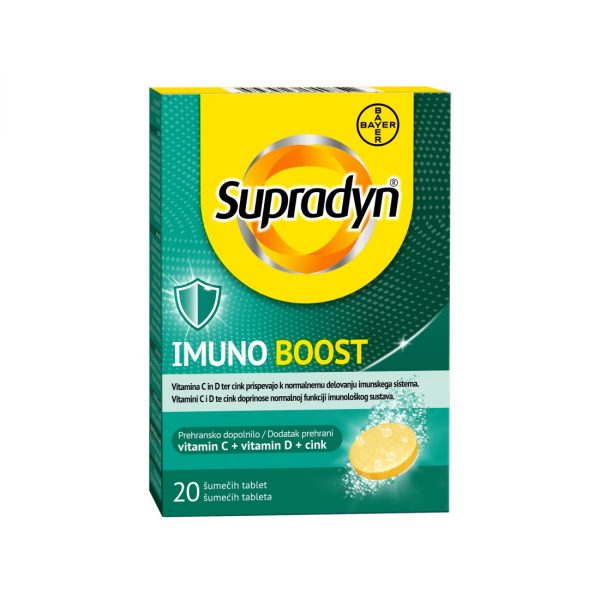 Supradyn® IMUNO BOOST je dodatak prehrani s vitaminima C i D te cinkom koji doprinose normalnoj funkciji imunološkog sustava.